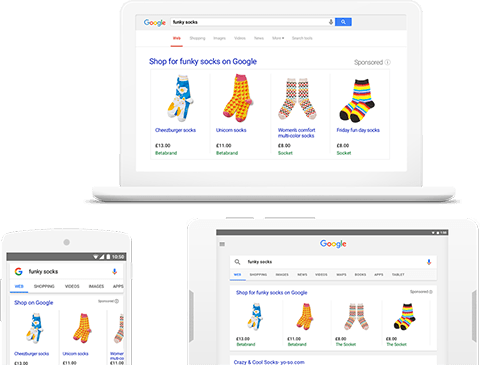 Coloque as imagens e o preço dos seus produtos, bem como o nome da sua empresa, à frente das pessoas que pesquisam no Google, independentemente do dispositivo que utilizem. Apenas paga quando as pessoas clicam para visitar o seu Website.